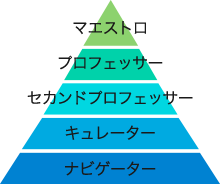 全国に4人の最高位のマエストロから、プロフェッサー、セカンドプロフェッサー、キュレーター、ナビゲーターといった5階層レベル構成になっています。